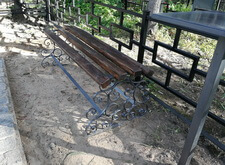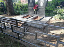 Дополнительно устанавливаем напротив надгробий металлические лавочку и столик, сидение скамьи изготовлено из дерева.