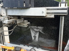 Для того, чтобы достичь максимальной точности изображения, мы использовали гравировальный станок. Установив его перед памятником, мы запустили аппарат. На фотографиях ниже представлен процесс гравировки станком.